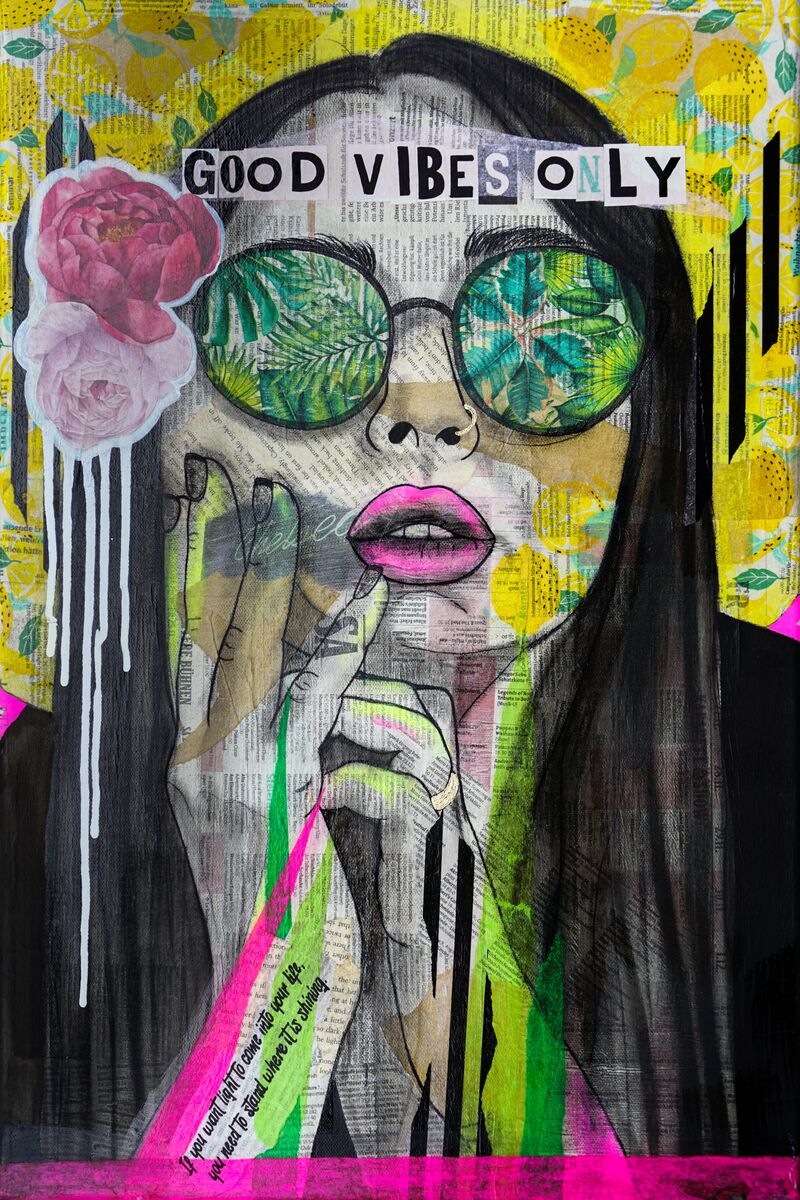 Mixed media on canvas. I used newspaper, different other papers like silk paper, charcoal and acrylic spray paint for this artwork.